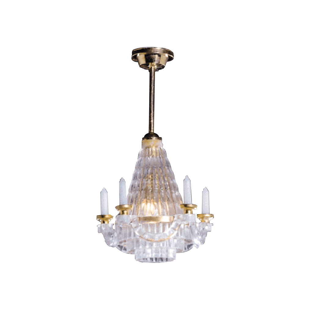 The gorgeous Brass Downrod Crystalene Chandelier dollhouse miniature electrical light, by Cir-Kit Concepts, is sure to make your 1 inch scale dollhouse light up with magnificence! The Crystalene Chandelier measures 2 1/2"H x 1 3/8"W. Real Good Toys also includes the CK804-1 Adapter (for ease of installation) and an extra set of (4) CK1010-29 12V C.F. Screw Base Bulbs - this is a FREE extra value of $13.92. Real Good Toys wants you to succeed with your dollhouse electrical installation. We're happy to announce that our resident electrical guru Gary has tested and approved each light we sell. In addition, we're excited to offer you a photo tutorial for each light installation. RGT make's buying electrical lights the easiest and best way to purchase everything you need to complete your dollhouse project...with confidence!