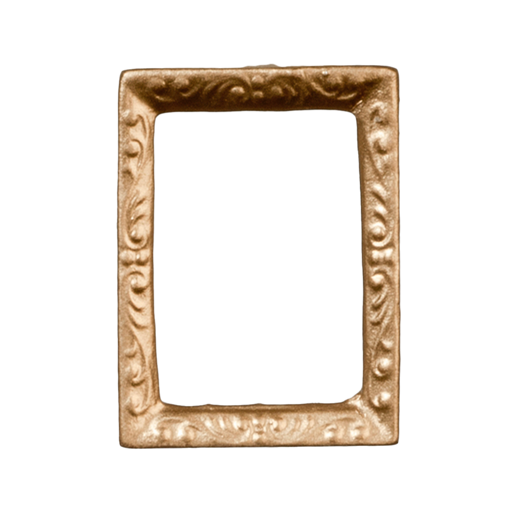 Customize every room in your 1 inch scale dollhouse. Every dollhouse should have some personal touches...especially some photos of the people you hold dear to your heart. This simple, small, Gold Rectangle Picture Frame is the perfect way to achieve such customization. The frame is plastic which makes it light for hanging on your dollhouse walls. The fine details on the frames are simply beautiful. The Gold Rectangle Picture Frame measures approximately 3/4"W x 1/8"D x 1"H. 1 frame per package.