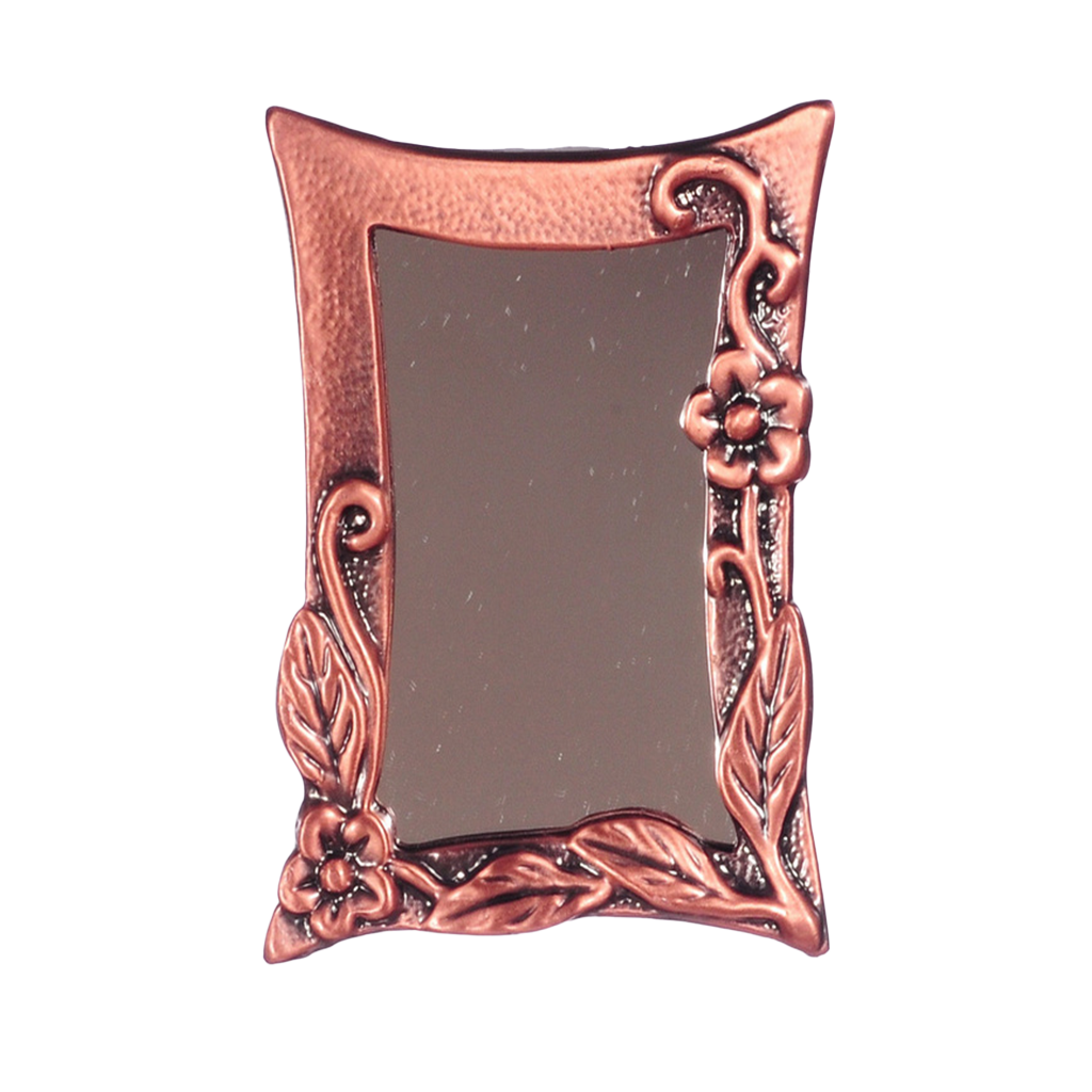 Decorate your 1 inch scale dollhouse with this gorgeous Antique Copper Mirror with flower and leaf details. This vintage piece will make your dollhouse room pop with realism. Perfect for any 1/12th scale dollhouse! The Antique Copper Mirror measures 1 1/2"W x 1/8"D x 2"H.