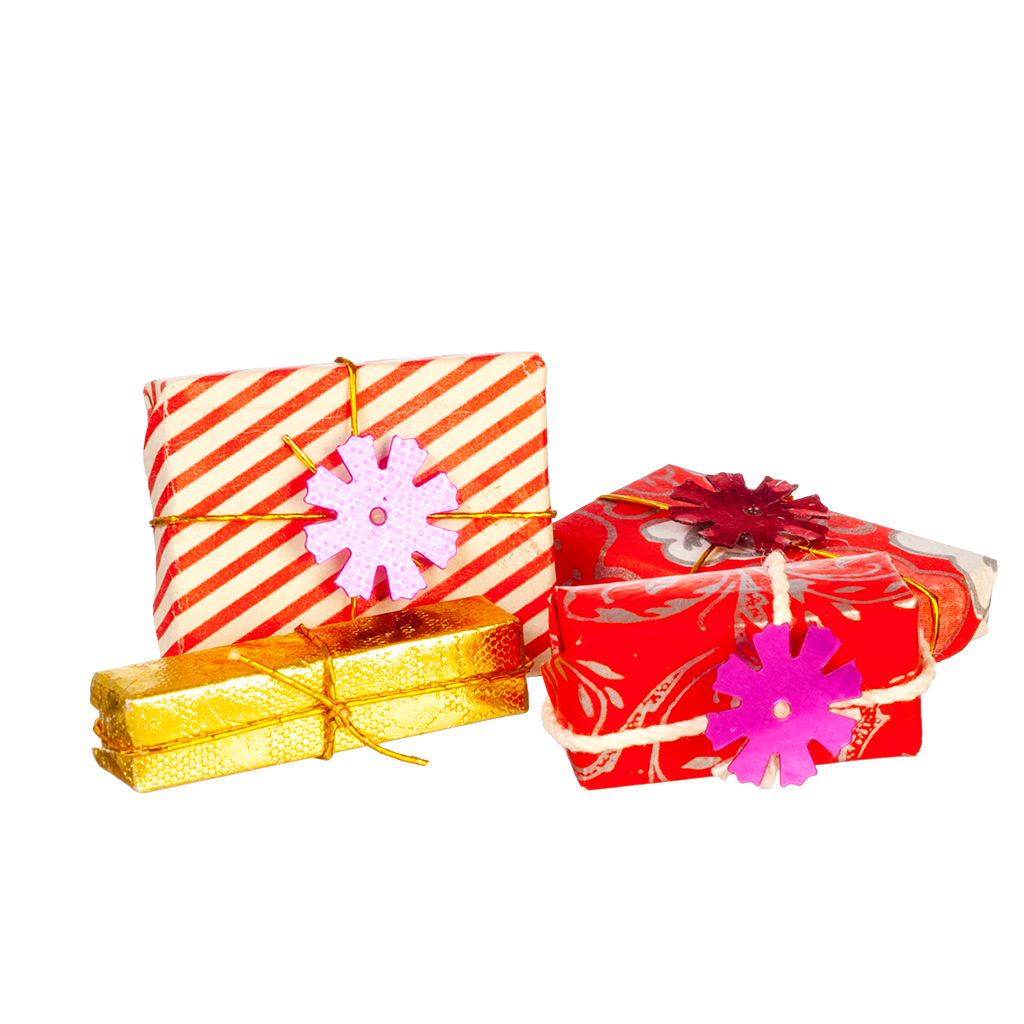 Decorate your dollhouse for the holidays using these decorated Christmas Gift Box set! Each set arrives as shown in the photo. 4 pieces per package.