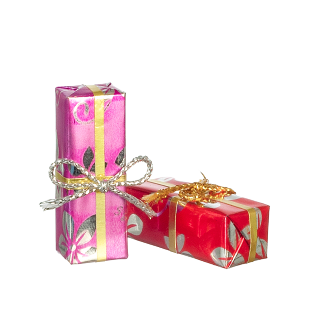 Decorate your dollhouse for the holidays, or someone's birthday, using these decorated and wrapped Gift Boxes! Each set arrives as shown in the photo. My stock includes a dark pink box and light pink box with ribbons as shown. 2 pieces per package.